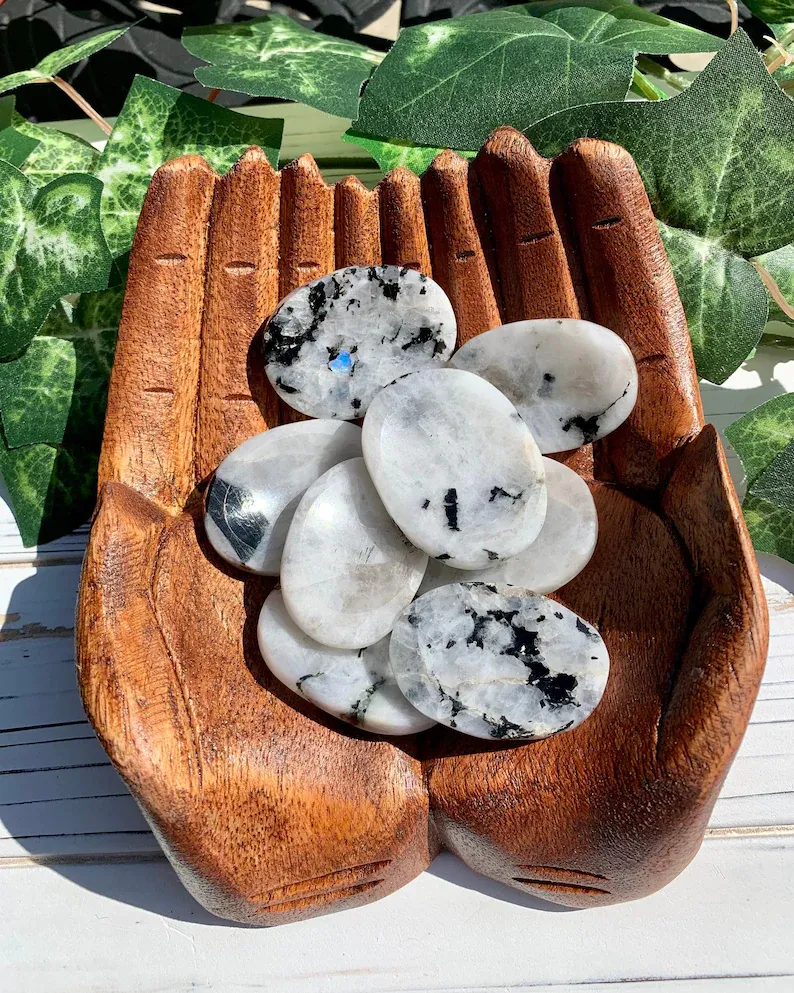 Moonstone represents inner clarity, cyclical change, and a connection to the feminine. It is a symbol of light and hope and also encourages us to embrace new beginnings. It is closely linked to themes of femininity such as fertility, balance, softness, and intuition. Moonstone invites us to look deep within and connect to our core. These glowing gems help to magnify our emotions in a way that helps us to sort through them. They also connect us to our feminine energy and help us to embrace themes of truth and change.